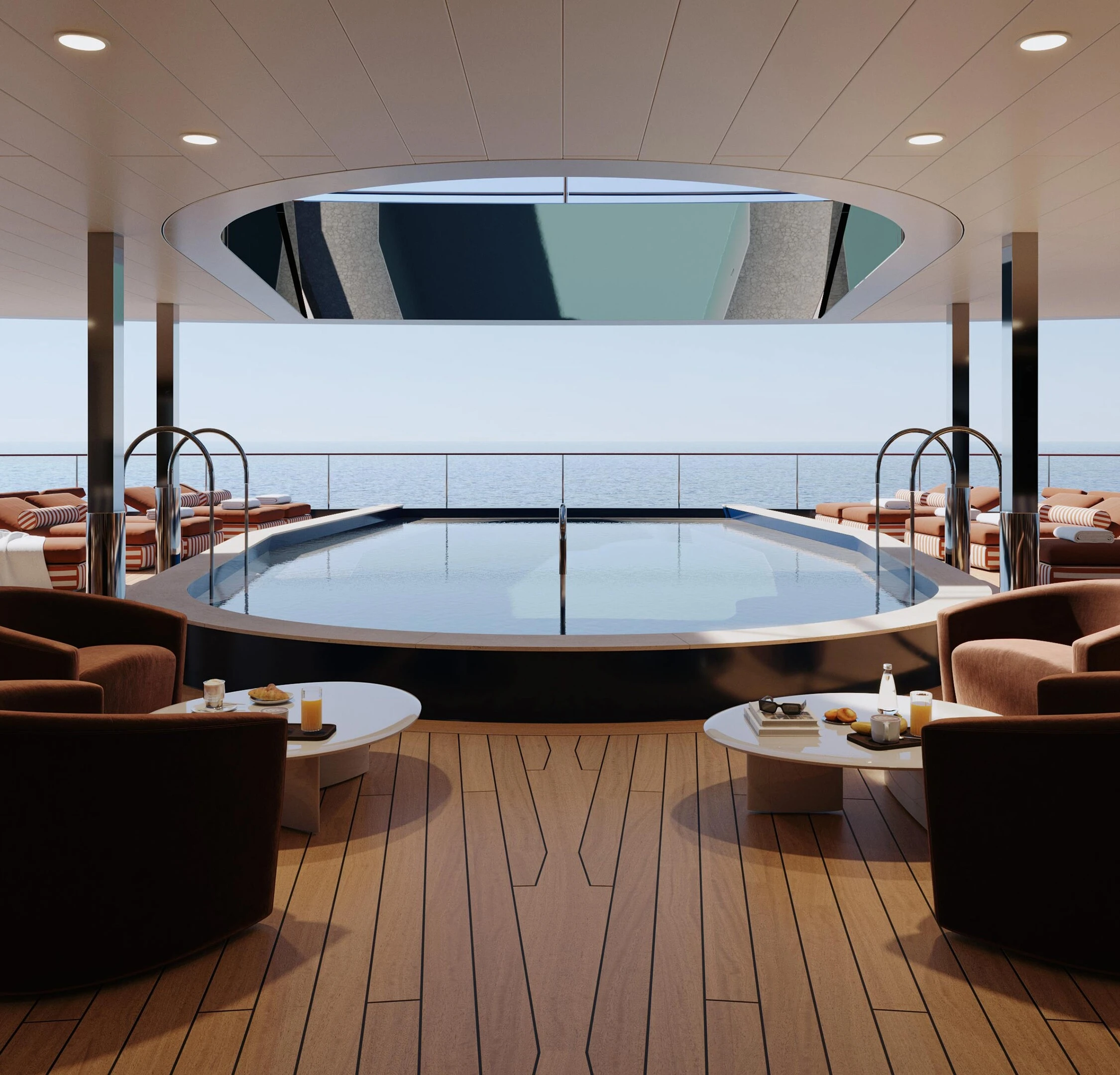 Wellness is central to the Four Seasons Yachts concept. Expect an ocean-view spa, an enormous saltwater pool that transforms into an evening entertainment space, and a “transverse marina”, which is a sea-level platform for direct access to the water.