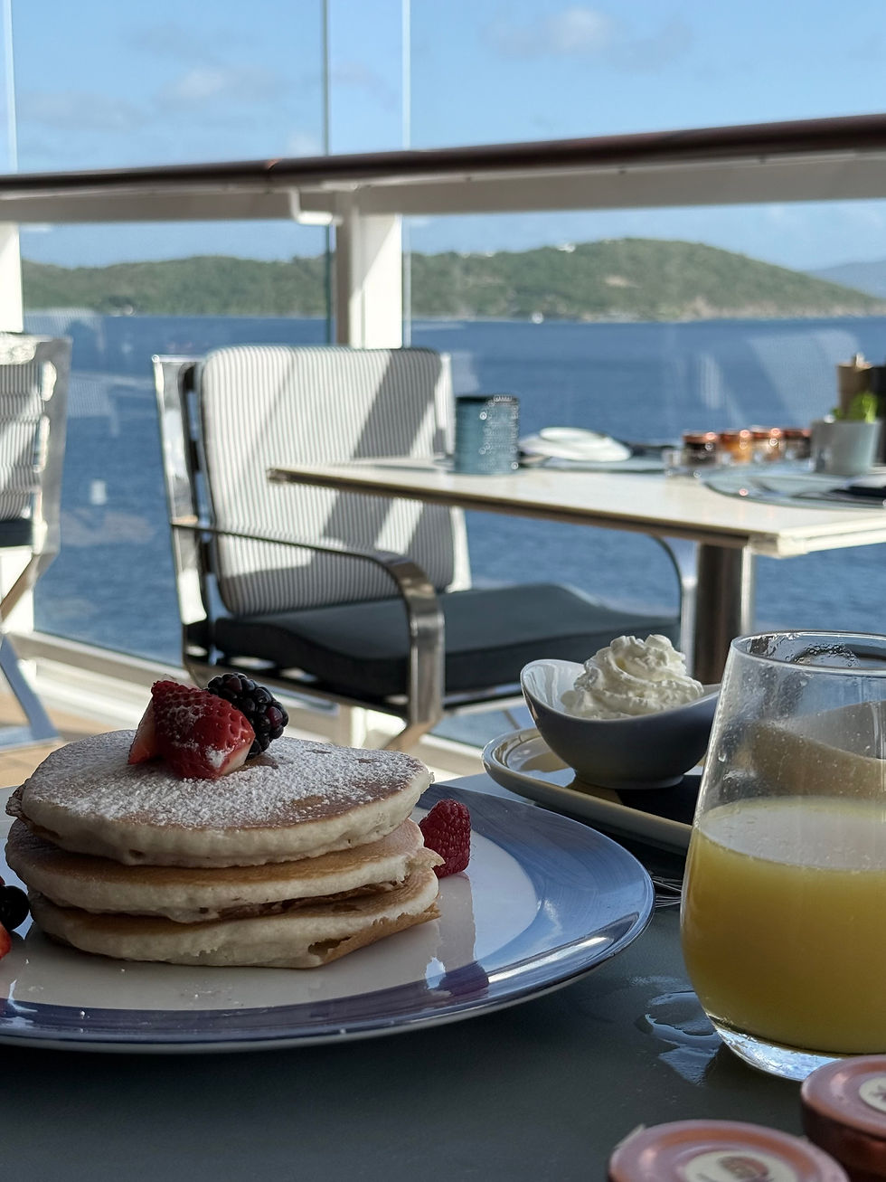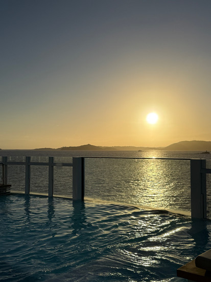 Stepping aboard Ilma in San Juan is a moment that instantly signals a shift from the everyday. The yacht feels modern yet intimate, polished yet relaxed. Settling into our suites, each with a private terrace, we immediately felt the sense of calm that comes from being fully taken care of. We were welcomed with a bottle of Moët in our rooms, and then reunited the team on the top deck of the yacht. There was a welcome band, cocktails, and so many foods to try.